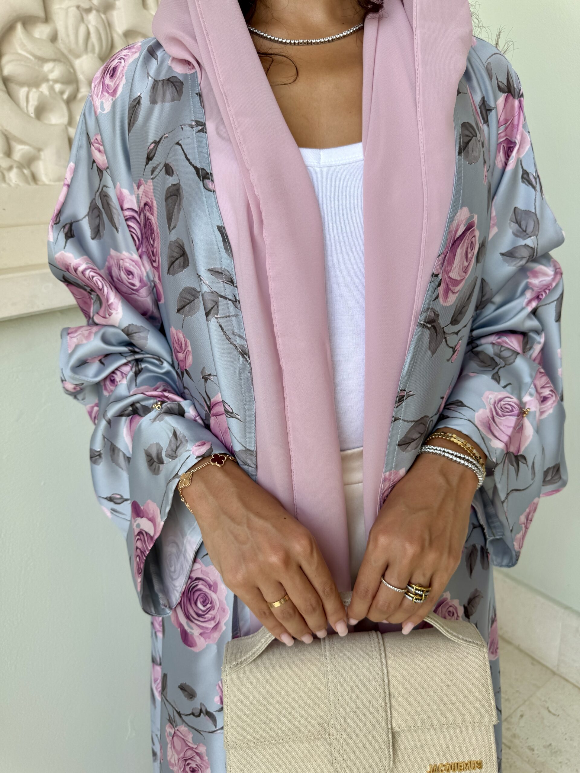 Detail: Elegance meets simplicity with this timeless silk abaya. Designed with delicate piping along the sleeves and hemline, it features subtle pleats that add graceful movement to every step.